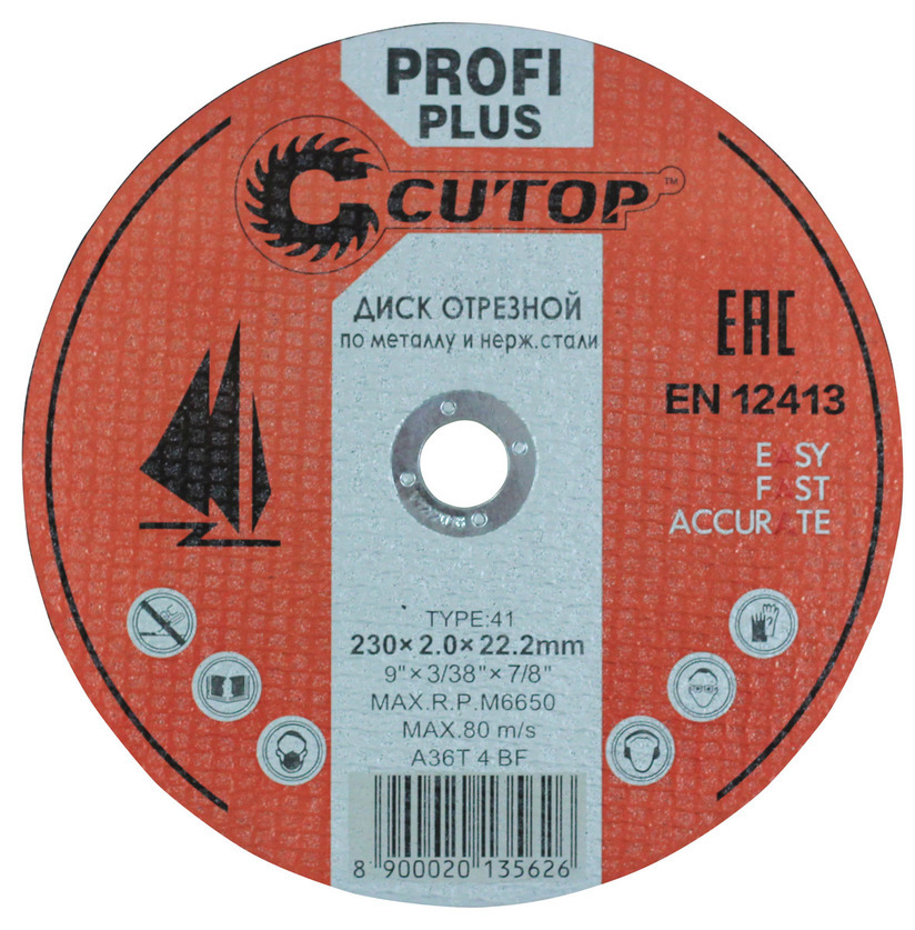 Диск отрезной индустриальный по металлу и нержавеющей стали 230х1.8х22.2 мм Т41 Cutop Profi Plus 40000т