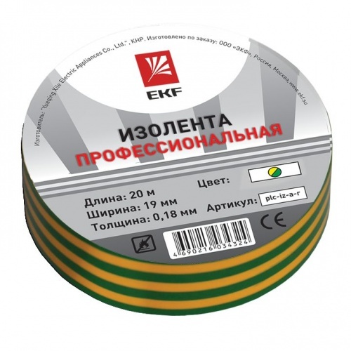 EKF PROxima plc-iz-a-yg Изолента ПВХ 19мм х 20м класс А (профессиональная, желто-зеленая)