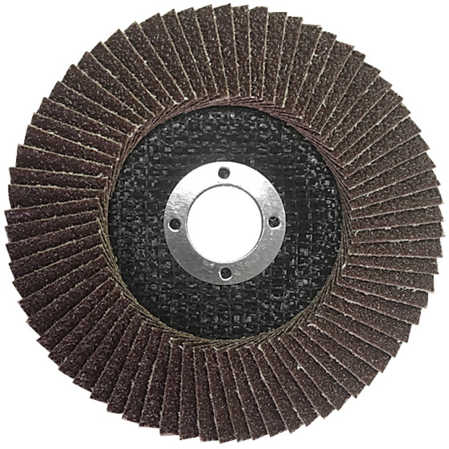 Круг наждачный лепестковый класса "Мастер" для повседневного использования. При изготовлении используется гибкий абразивный материал состоящий из тканевой основы на которую нанесен оксид алюминия - Корунд. Наполняемость диска составляет 72 лепестка с углом наклона 10 градусов, что позволяет увеличить площадь контакта обрабатываемой поверхности и КПД круга. Предназначен для обработки металла. Для углошлифовальных машин (УШМ). Посадочный диаметр 22.2 мм