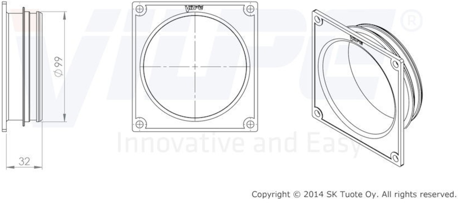 Vilpe Фланец вентиляционной решетки 100 мм используется с наружной вентиляционной решеткой 150х150.