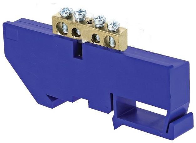 Шина 0 N (6х9мм) 4 отверстия латунь синий изолятор на DIN-рейку PROxima EKF sn0-63-04-d