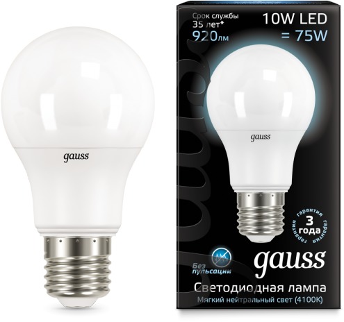 Gauss 102502210 Лампа LED A60 10W E27 4100K 1/10/50