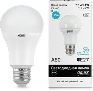Gauss 23225 Лампа LED Elementary A60 15W E27 4100K 1/10/40