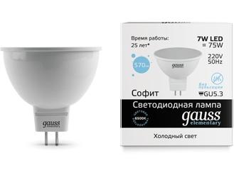 Gauss 13537 Лампа LED Elementary MR16 GU5.3 7W 6500K 1/10/100