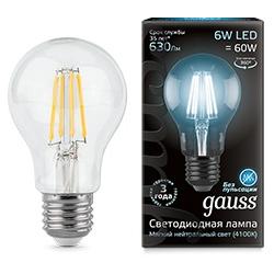 Gauss 102802206 Лампа LED Filament A60 E27 6W 4100К 1/10/40