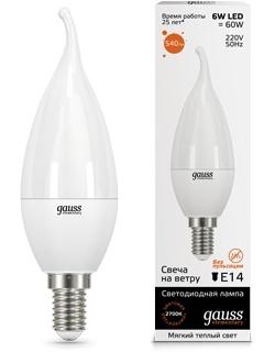 Gauss 34116 LED Elementary Candle Tailed 6W E14 2700K 1/10/50 светодиодная лампа