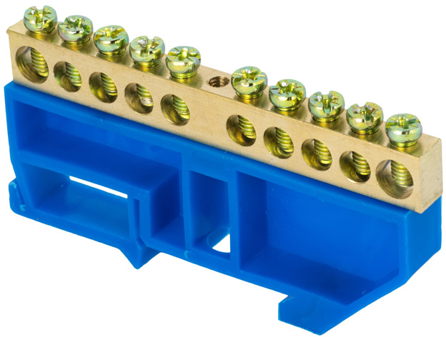 Шина "0" N (8х12мм) 10 отверстий латунь синий изолятор на DIN-рейку розничный стикер PROxima EKF sn0-125-10-d-r