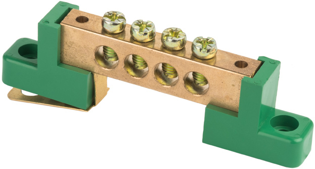 EKF sn0-125-04-2-pe Шина "0" PE 8x12мм 4 отверстия латунь с контактной пластиной 2 зелёных угловых изолятора PROxima