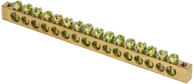 Шина PEN "ноль-земля" (6х9мм) 16 отверстий латунь крепеж по краям PROxima EKF sn0-63-16-k