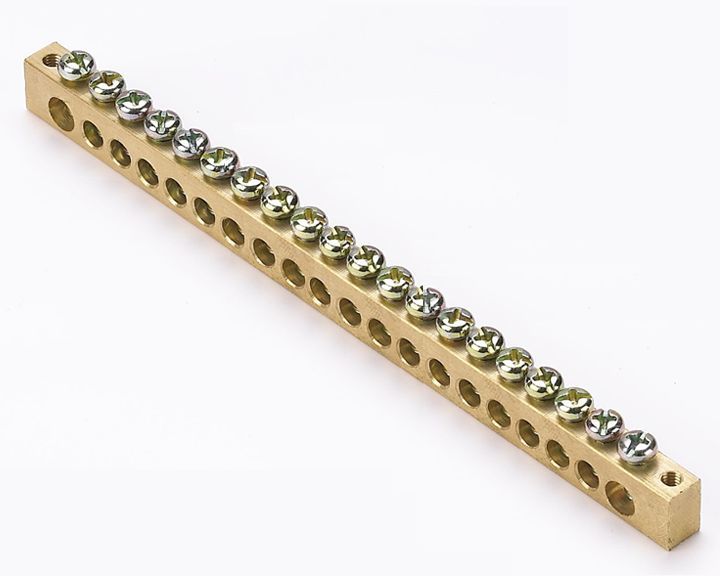 Шина PEN "ноль-земля" (8х12мм) 20 отверстий латунь крепеж по краям PROxima EKF sn0-125-20-k