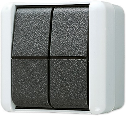 Jung WG800 839W Выключатель двухклавишный (10 А, в сборе, открытая установка, серый/черный)