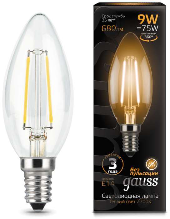 Gauss 103801109 Лампа LED Filament Candle E14 9W 2700К 1/10/50