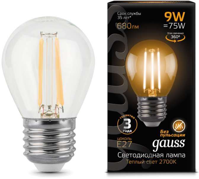 Gauss 105802109 Лампа LED Filament Globe E27 9W 2700K 1/10/50