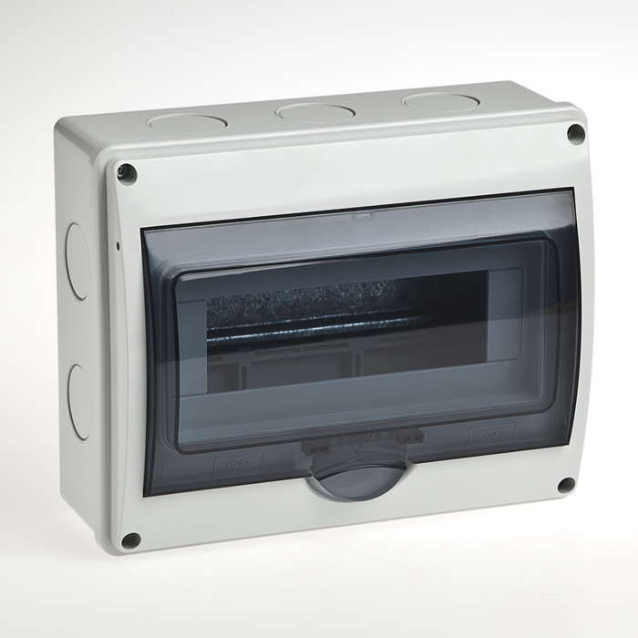 Бокс ОП Тусо 10мод. (4в) IP65 сер./дым. двер. Рувинил 69011