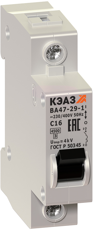 Автоматический выключатель однополюсный 4А КЭАЗ ВА47-29 253043 (4.5 кА, B)