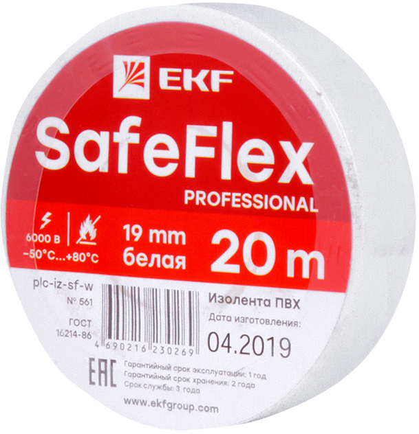 Изолента ПВХ белая 19мм 20м серии SafeFlex