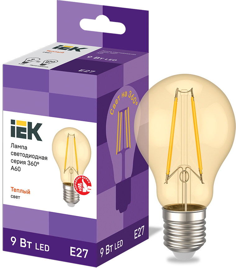 Лампа светодиодная A60 шар золото 9Вт 230В 2700К E27 серия 360° IEK